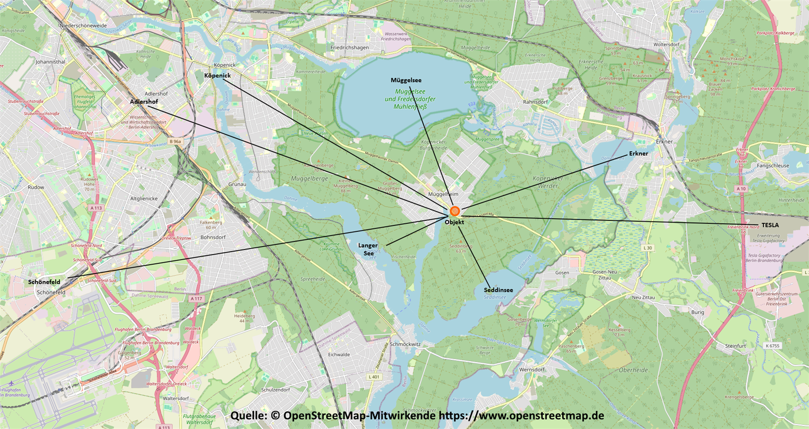 Anschluss an das S-Bahnnetz (S3) über Wilhelmshagen oder Köpenick.