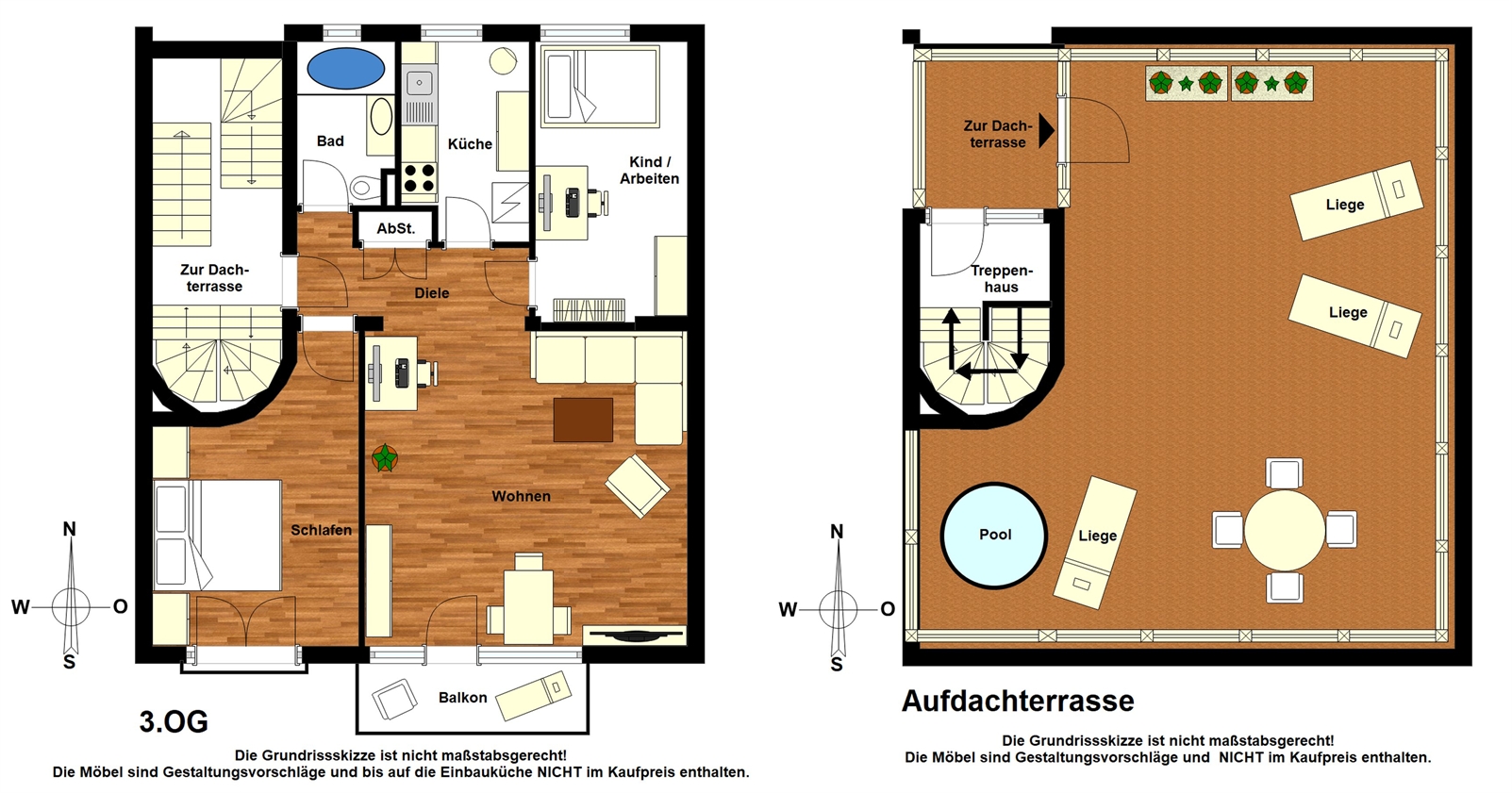 Wohnfläche ca. 119 m² inkl. ca. 40 m² anteilig berechneter Dachterrasse (50% von ca. 80 m²)
