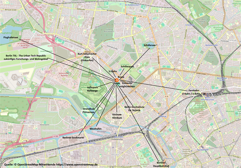Die Anbindung an den öffentlichen Nahverkehr ist hervorragend. Mehrere Buslinien sowie die U-Bahn-Linie U6 (Station Rehberge) sorgen für eine schnelle Erreichbarkeit der Berliner Innenstadt, zahlreicher Hochschulstandorte und beliebter Kieze wie Kreuzberg oder Mitte. Einkaufsmöglichkeiten für den täglichen Bedarf sind fußläufig erreichbar, ebenso wie Apotheken und medizinische Versorgungseinrichtungen.