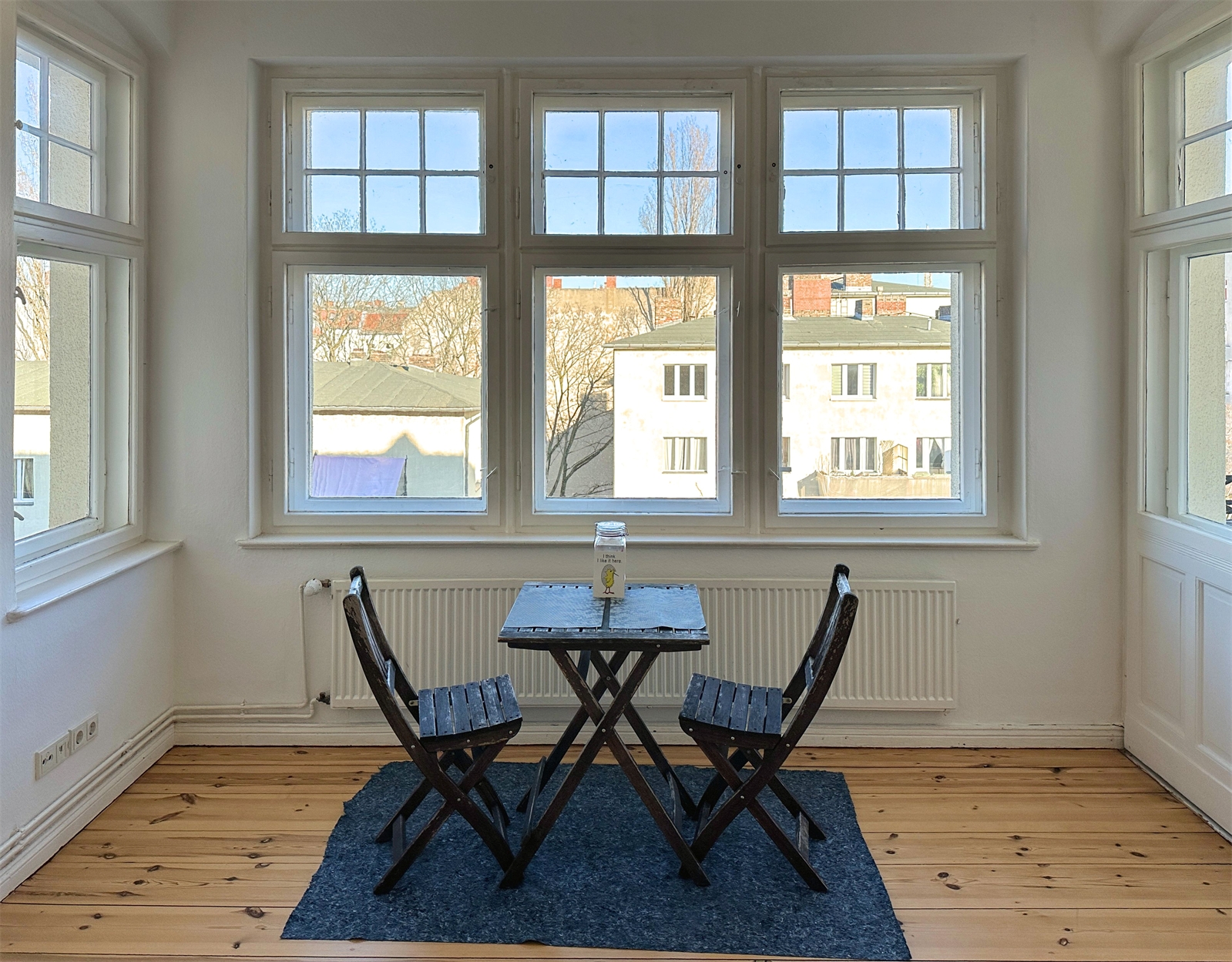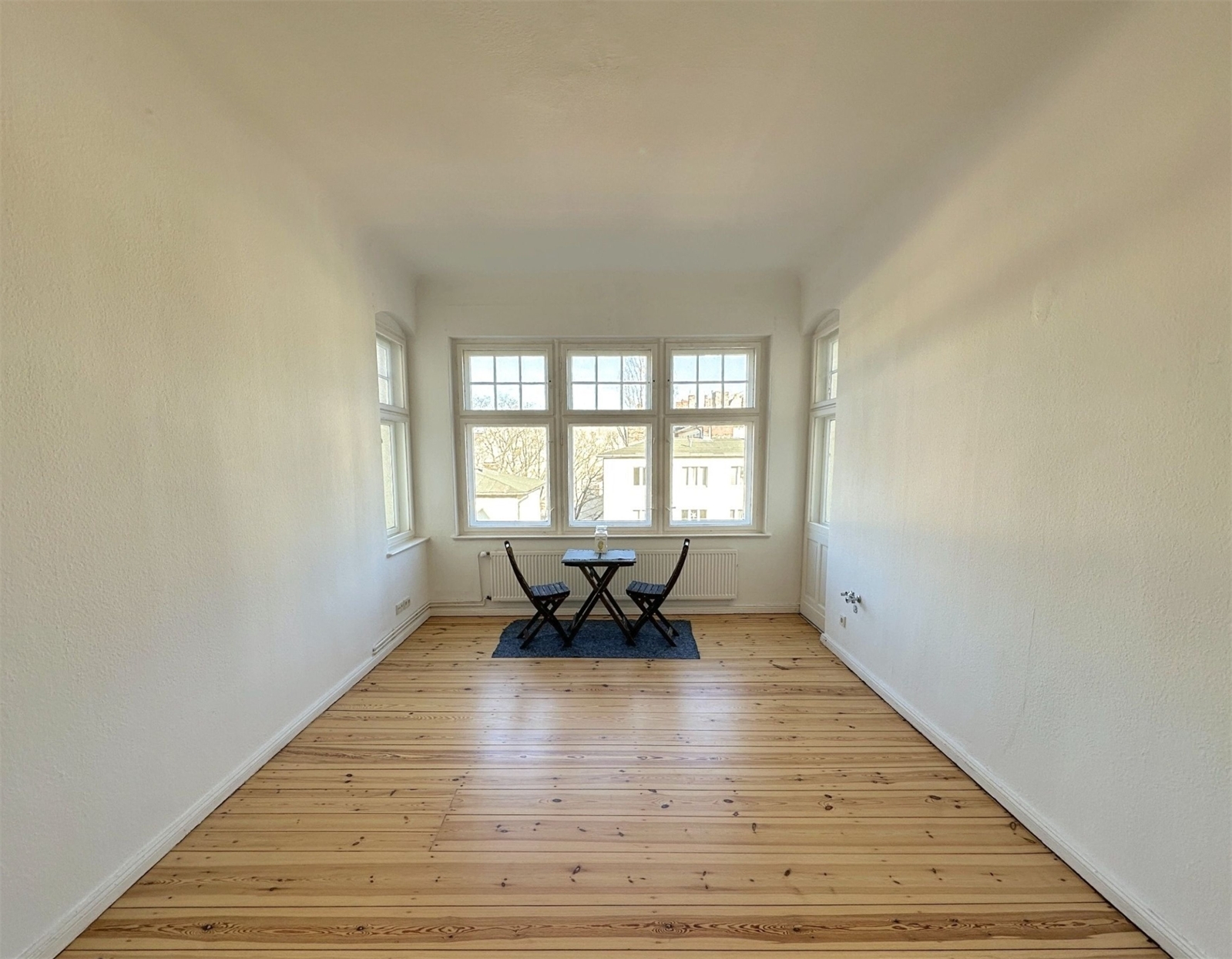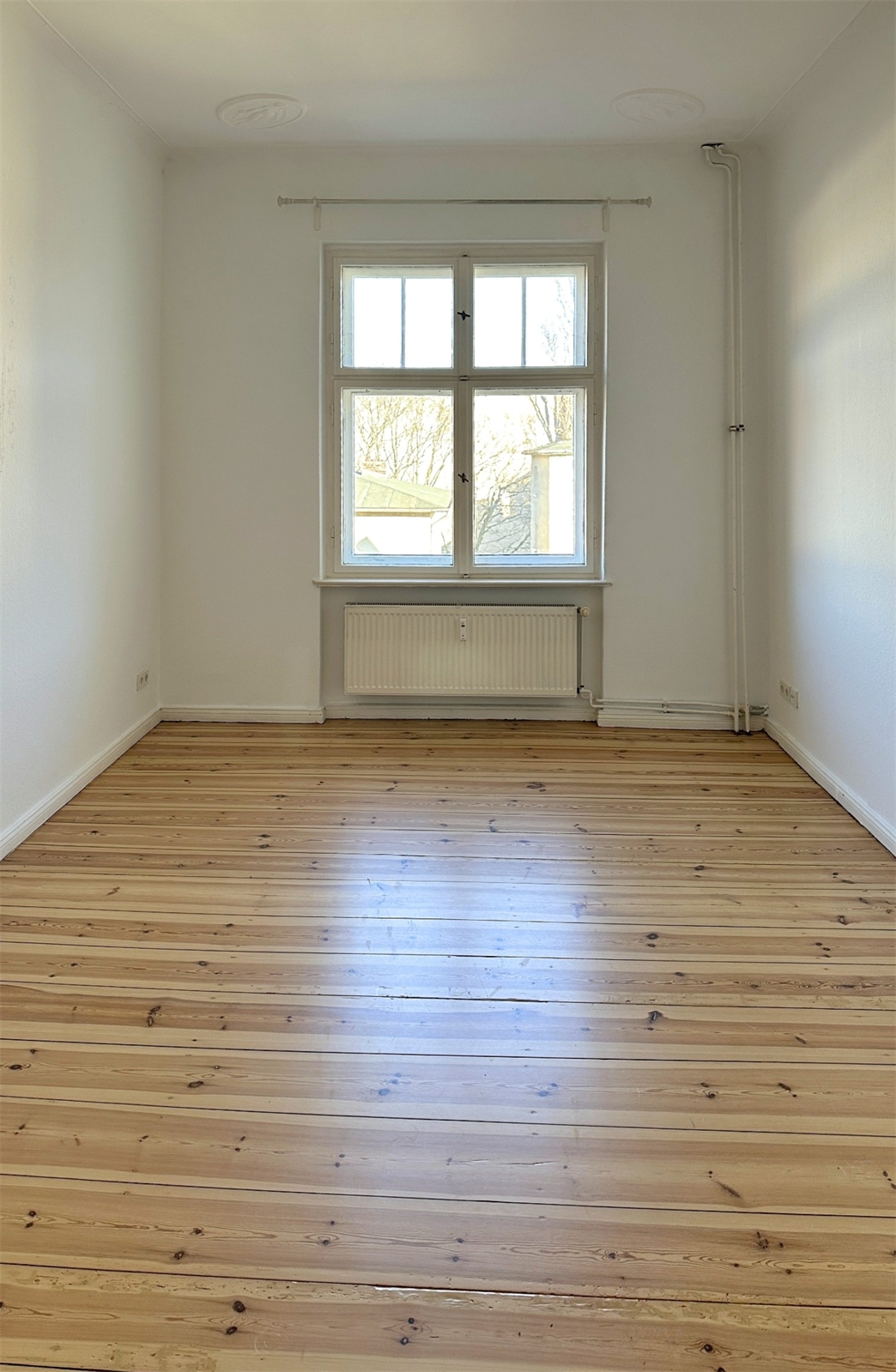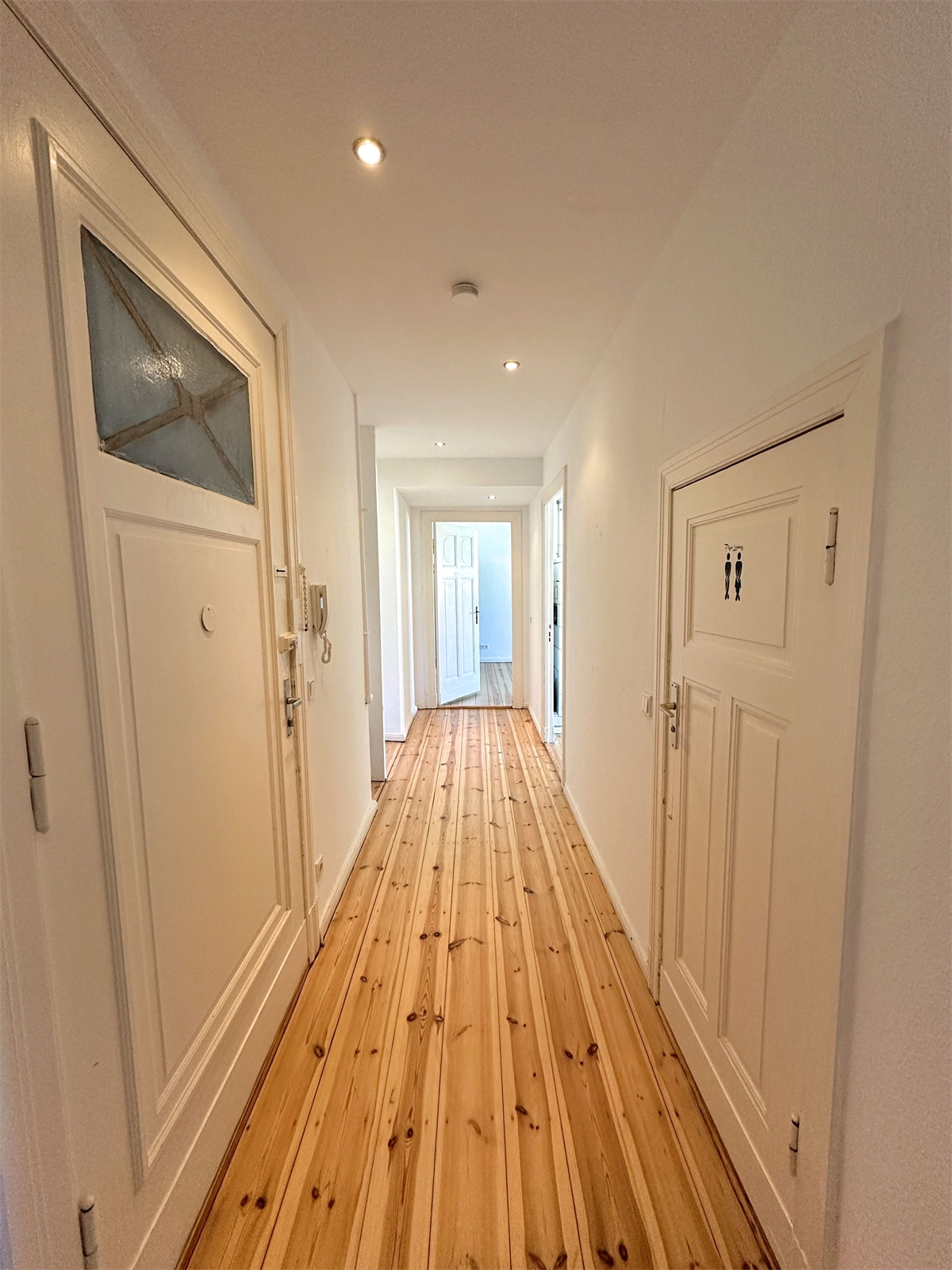 Die Wohnung überzeugt mit einer durchdachten Raumaufteilung – alle Zimmer sind bequem vom Flur aus zugänglich. Besonders hervorzuheben ist der frisch abgezogene Dielenboden, der in den Wohnräumen und der Diele eine warme, einladende Atmosphäre schafft.